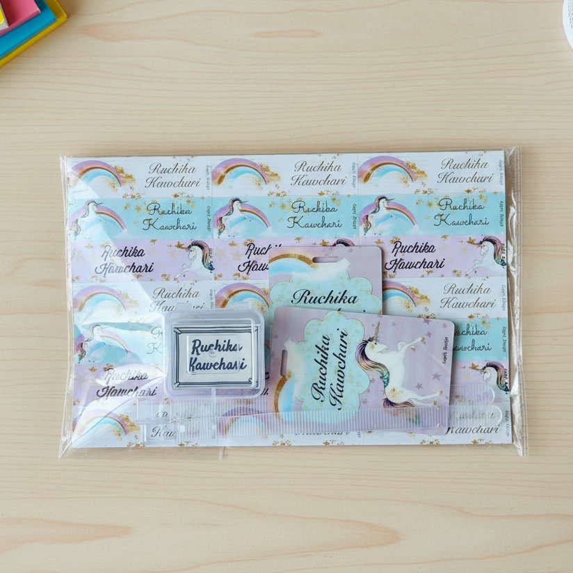 Clean, minimal labels that blend seamlessly onto bottles, tiffins, and other everyday items while keeping your child’s name clearly visible.